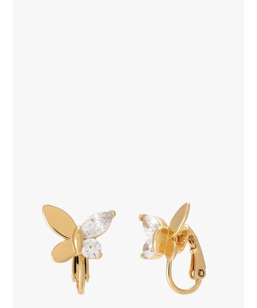 春の訪れを予感させるバタフライモチーフのイヤリング。羽の半分を艶やめくゴールドトーン、もう半分をクリアに輝くキストーンを施したハーフ&ハーフのデザインが、耳元に軽やかな抜け感をプラス。オンの日のセットアップから休日のデニムスタイルまで、着こなしを選ばず活躍するミニマルなサイズ感です。