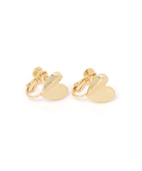 光沢感のあるハートモチーフがかわいらしいイヤリング。 甘くなりすぎず、上品にもカジュアルにも合わせやすいアイテムです。