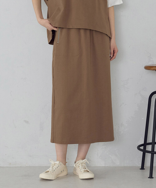 ◆ONIGIRI(おにぎり)の【セットアイテム】裏毛ナロースカート◆ 《デザイン》 金属ファスナー付きの大きなポケットがポイントです。 ウエストはオールゴム仕様です。スピンドル入りですのでサイズ調節も可能です。 ヒップから裾に向けて真っ直ぐなシルエットですが後ろ中心にベンツを入れる事で 裾が広がり足さばきが良いです。シンプルなデザインなのでどんなトップスとも 合わせやすく、一枚あると便利なスカートです。 《素材》 裏毛:綿100%の裏毛素材です。表面はフラットで 裏面がループパイルになっているので肌触りが柔らかく、 保温性と吸汗性に優れています。少し張り感があるので、 シルエットが綺麗に出る素材です。 《お取り扱い》 お洗濯の際、多少の縮みがありますが、伸縮性がありますので、 お洗濯後、形を整えてから陰干しして下さい。 【注意事項】 画像の商品はサンプル品を使用し撮影している場合がございます。 できるかぎり、実際の商品の色味に近づけるよう徹底しておりますが、 光の当たり具合や、お使いのモニター、お部屋の照明などの 閲覧環境により、若干異なって見えることがございます。 また仕様、加工、サイズ、素材等も 若干異なることもございますのでご了承くださいませ。 《セットアップ対応》 同素材のニットスカート(商品番号:52-36CO70-206)と セットアップとしてお召しいただけます。 …………………… 透け感 : なし 厚さ:普通 伸縮性:あり 光沢感:なし 裏地:なし ポケット:あり 洗濯方法:洗濯機洗い可 ………………… ※画像の商品はサンプルとなりますので実際の商品と仕様、加工、サイズが若干異なる場合がございます。 ※こちらの商品はFIVE FOXes独自の採寸方法となっています。 本サイトのサイズガイドと採寸方法が異なる場合がありますのでご了承ください。