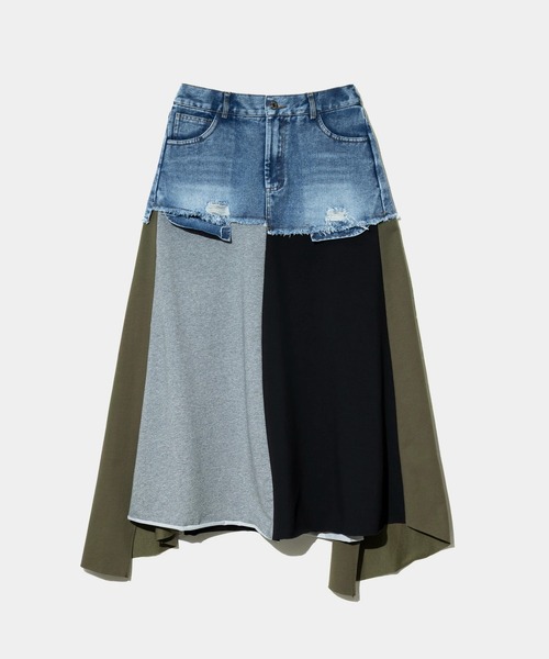 ☆CUBE SUGAR☆ デニム x ジャージー クレイジースカート CUBE SUGAR/キューブシュガーから新作スカートが登場。 ■このスカート、なんか面白い デニムとジャージを組み合わせた、クレイジーな切替デザイン。 ぐるりと一周、どこから見ても違う表情が楽しめます。 ダメージ感のあるデニムと、落ち感のあるジャージ素材。 前後差があるから、歩くたびに動きが出ます☆ 後ろはゴムだから、はき心地も楽ちん。 リメイクしたみたいな、一点もののような雰囲気で、 個性的なのに、着てみると意外としっくりくる、今日はこれ!って気分の日のスカートです。 ※特殊加工製品のご注意(バイオ・ストーン・ケミカル・ブリーチ・オーバーダイ・ウォッシュ) この製品は独特(製品は一点一点多少表情が違います)な色目(風合い)を出す為、 特殊な加工をしておりますので、取扱いの際は下記の点にご注意ください。 ・この製品の特色としては洗濯の回数が増えるにつれて独特の持ち味(色褪せ)が出てきます。 ・洗濯の際はどんどん色落ちしますので、他の物とは絶対に一緒に洗わないでください。 また、つまみ洗いは避け、漂白剤は使用しないでください。 ・洗うと多少縮みます。あらかじめご注意ください。 ・着用の際、下着等に色が付着することがありますが2~3回洗濯すれば徐々にとれていきます。 ・洗濯は表示に従ってください。(ドライクリーニング以外はご家庭での手洗いの上、自然乾燥をお勧めします) ※着用、お取り扱いの際は、商品についている品質表示とアテンションタグを必ずご確認下さい。 【CUBE SUGAR/キューブシュガー】 着ているだけでほっとする。 肩肘はらずに等身大でいられる。 だけどその時流(とき)の気分もきちんとあじわえる。 そんな「CUBE SUGAR」のLife Styleを提案します。