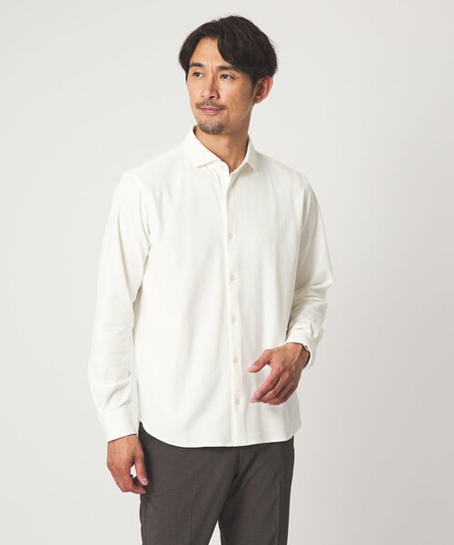 ■WEB限定商品■ <JUST fit> ・オンオフ兼用で活躍する汎用性の高い一枚 ・すっきりとしたカッタウェイカラー ・着心地の良いジャージ生地 ■デザイン 首元をすっきりと見せるカッタウェイカラーが特徴のシャツです。 適度にゆとりを持たせたジャストなシルエット。 フレンチフロント仕様に加え、ステッチを極力表に出さない設計にし、クリーンで上品な佇まいに仕上げています。 ■素材 コットン×ポリエステル素材の鹿の子ジャージ生地を使用。 ほどよくハリコシがあり、凹凸のある表面でさらっとした肌触りが魅力です。 ■コーディネート ビジカジやキレイメカジュアルな着こなしにおすすめです。 ジャケットやカーディガンなどのインナーにも〇。 一枚着での着用は、細身のボトムスや軽快なシューズと合わせると、バランスよくまとまります。 ============================ 裏地:なし 透け感:なし 伸縮:ややあり 光沢感:なし ============================ <JUST fit(ジャストフィット)> スタンダードなアイテムを現代的なシルエットやカラー、素材で再定義。 お手持ちのアイテムと合わせやすく、汎用性が高い。 着用時のFIT感やカラーはスマートな大人な雰囲気。 様々なシーンにFITする程よく力の抜けた品格を合わせ持ったアイテム群。 【注意事項】 ※商品に「取り扱い上の注意書き」、「洗濯表示」がございます場合は、使用前に必ずご確認ください。 ※商品画像は、光の当たり具合やパソコンなどの閲覧環境により、実際の色味と異なって見える場合がございます。あらかじめご了承ください。 ※商品の色味の目安は、商品単体の画像をご参照ください。 店舗へお問い合わせの際は、全国のgreen label relaxing各店舗まで下記の品名/品番をお申し付けください。 品名:CSN★★JF STRC KNK SHT 品番:32116000008