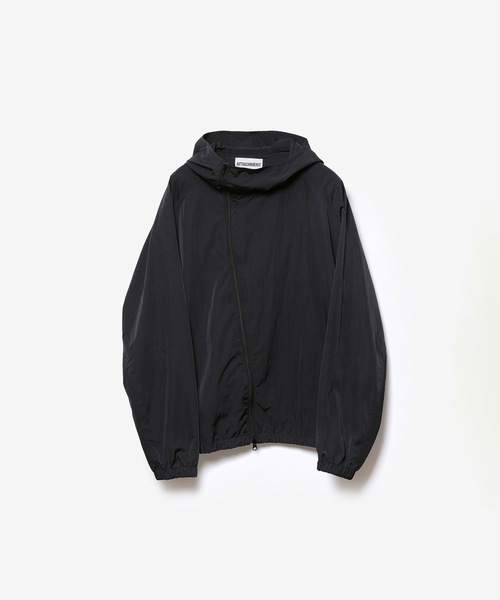 カーブしたフロントファスナーが印象的なフーデットブルゾン■素材高密度に織り上げたナイロンタフタを採用。糸の密度を極限まで高めることで、天日干ししたようなナチュラルでリラックスした表情に。薄手で軽量ながら、耐久性と撥水性能にも優れた機能的なナイロン素材。■デザインカーブしたフロントファスナーが印象的なフーデットブルゾン。ボリューム感のある身幅とドロップしたショルダーラインがリラックス感を演出します。薄手の柔らかな素材を使用しているため、程よいボリューム感を残しつつも縦方向に落ち感のあるスッキリとしたバランスに。【ATTACHMENT / アタッチメント】99年に熊谷和幸により”ATTACHMENT”が設立。服を、着る人の魅力や個性、内面を引き出す“付属”として捉え、シルエットの計算と、素材使いから生まれる着心地の良さ、クラフツマンシップが叶える緻密な仕立て、ディテールをそぎ落としたシンプルで普遍性のあるウェアを提案しています。