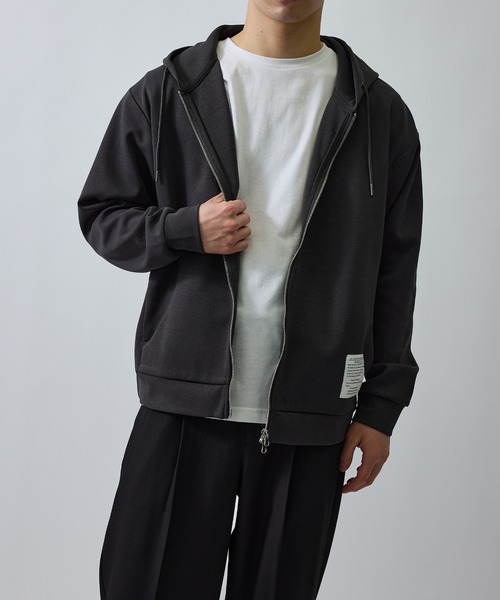 【素材】 空気を含んだような軽やかなタッチ感のストレッチ素材を使用。 杢調でキレイめな見え方ながら、ハリと弾力があり、快適な着心地が続きます。 【シルエット・デザイン】 程よくリラックス感のあるシルエットで、ジャケット感覚でも着られる汎用性の高いデザイン。 左裾には別生地タグをあしらい、さりげないアクセントに。 ダブルジップ仕様のため、下だけ開けてレイヤードを楽しむことも可能。 脇の切り替えポケットも備え、デザイン性と機能性を両立。 【杢ストレッチダンボールシリーズ】 ジップパーカー:AOK06080 プルオーバー:AOM06080 【スタイリング】 ややハリのあるスポンディッシュな素材で、キレイめからカジュアルまで幅広く活躍。 デニムやリラックス感のあるパンツと合わせたコーディネートがおすすめ。 ------------------------------- 裏地:なし 透け感:なし 伸縮性:あり 生地感・厚さ:普通 ポケット:あり その他仕様:なし ------------------------------- 【モデル着用サイズ】 Height:178cm Lサイズ着用 ※撮影環境やモニターによって色味が異なる場合があります。 ※商品のカラーは詳細画像をご参照ください。