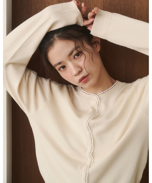 程よい厚さでさらっと羽織れる 万能なカーディガンの登場。 アンニュイなフロントボタンがアクセントの可愛らしいデザインです◎ 柔らかな天竺編みのニット生地で、 さらっとノンストレスで着用できるアイテム。 レーヨンベースの素材で非常に柔らかな素材感が特徴です。 衿と前身ごろにピコレースを付け、 シンプルすぎないようにデザイン、 ボタンには蝶貝のボタンを使用しております。 着丈は長すぎず短すぎず、 インナーにも、メインにも使い勝手のいいシルエット感 ワンピースにもボトムスタイルにも両方合わせていただけます。 ※入荷時期により色味が若干異なる場合がございます。予めご了承の程よろしくお願い致します。 director たかあしあかり/高芦あかり *商品のお気に入り登録* 完売カラーの再入荷通知や、ラスト1点、セールの通知をお知らせ致します。 *ブランドのお気に入り登録* 新商品や再入荷など、いち早くブランドの情報を受け取ることができます。