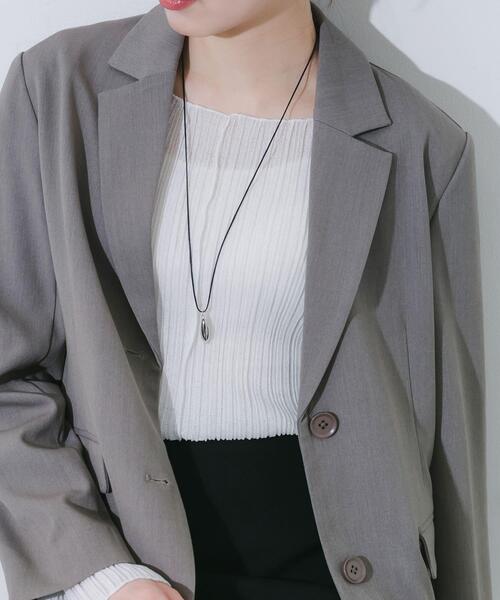 【気分に合わせてバランスをチェンジ】 ●ドロップ型のメタルパーツが胸元にモダンなツヤ感をプラス ●お洋服の襟元の開き具合に合わせて、長さを自由自在に調節できる ●カジュアルからきれいめまで幅広くマッチ その日の気分や着こなしに合わせて、自由にアレンジを楽しめるチョーカーネックレス ツヤっとしたシルバーのメタルパーツは、シャープになりすぎず女性らしい柔らかなニュアンスも感じさせてくれます。 コードの長さを調節できるので、首元にきゅっと寄せてチョーカー風に着たり、長めに垂らしてロングネックレスとして使ったりと、表情を変えながら着回しができるのが嬉しいポイントです。 【2026 Spring/Summer】【26SS】 ※使用されている素材は特性上、摩擦や汗、雨などによる水濡れにより色落ちし、洋服や周囲のものに色移りする恐れがありますので、白や淡色の洋服と組み合わせる際などは、商品のお取り扱いに十分ご注意ください。 ※メッキ製品(特に銀メッキ)は変色しやすいため、こまめなお手入れで防止してください。長期放置やスプレー香料などの同時使用は、特にお避けください。 ※メッキ製品は、アレルギー体質の方や体調が低下している方など、かぶれることがあります。肌に異常を感じた時はご使用をお止めいただき専門医にご相談ください。 ※アクセサリーは壊れやすいものです。取り扱いに注意していただき大切にご使用いただけるようお願い申し上げます。 総重量 : 約10g ※商品画像は、光の当たり具合やパソコンなどの閲覧環境により、実際の色味と異なって見える場合がございます。予めご了承ください。 ※商品の色味の目安は、商品単体の画像をご参照ください。 ▼お気に入り登録のおすすめ▼ お気に入り登録商品は、マイページにて現在の価格情報や在庫状況の確認が可能です。 お買い物リストの管理にぜひご利用下さい。 -