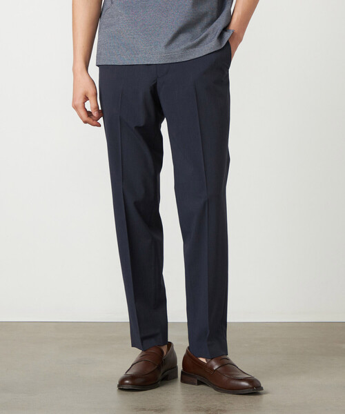 《デザイン》 デザインはきれいめに見える細身のテーパードシルエットのパンツです。 脇をゴム仕様にしたことで、動きやすさにもこだわりました。 生地の優れた伸縮性と軽さを活かした設計で、 ビジネスシーンでアクティブに着られるパンツです。 同素材展開しているジャケット(商品番号:47-01GO11-206)との着用がおすすめです。 《素材》 機能の優れた伸縮性が最大の特長です。 スポーツ素材から発想した生地のため、とても軽く日常で アクティブに着用できる素材です。 肌離れが良い部分もこの生地のおすすめポイントです。 《セットアップ対応》 同素材のジャケット(商品番号:47-01GO11-206)と のセットアップとしてお召しいただけます。 ※在庫がない場合もございますので、予めご了承くださいませ。 《取り扱い注意》 強い日光(又は照明等)を長時間受けますと 変色の恐れがありますのでご注意下さい。 お洗濯は必ずネットに入れ単独洗いして下さい。 洗濯後はシワを伸ばし陰干しして下さい。 タンブラー乾燥は禁止です。 アイロンを使用する際は必ずあて布を使用して下さい。 《その他仕様》 タック本数:ノータック 裾上げについて:裾上げ済 …………………… 透け感:なし 厚さ:ふつう 伸縮性:あり 光沢感:なし 裏地:なし 洗濯方法:洗濯機洗い可 …………………… ※画像の商品はサンプルとなりますので実際の商品と仕様、加工、サイズが若干異なる場合がございます。 ※こちらの商品はFIVE FOXes独自の採寸方法となっています。 本サイトのサイズガイドと採寸方法が異なる場合がありますのでご了承ください。