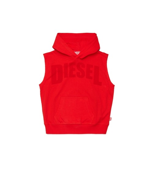 ・4歳~16歳対応 ・スリーブレス仕様のプルオーバーパーカー ・「DIESEL」と「78」のグラフィックを使ったアイコニックな一枚 ・メッシュとスウェットのミックスマテリアル ・前身頃にカンガルーポケット付き