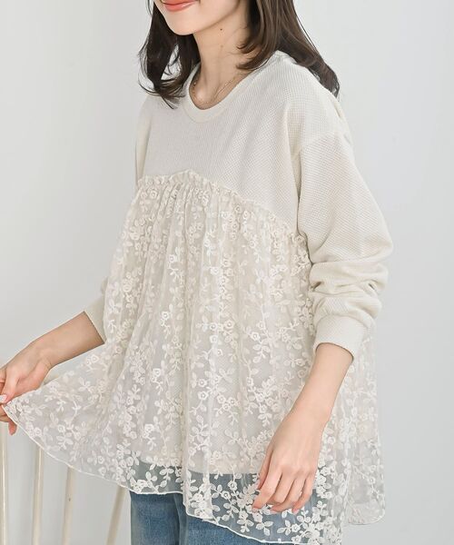 ☆2026/SS NEW☆ 1枚で可愛いレース切替えトップス オーガンジーの刺繍レースを重ねたガーリートップス。 胸元のギャザー切替えでふわりと広がる女性らしいデザインになっています。 身頃は柔らかでストレッチの効いた鹿の子ニットソー。 表面感のある素材が表情豊かな装いを演出します。 着るだけでコーデが映える主役アイテム 裏地なし 伸縮性あり 薄手 織キズやだま等みられる場合もございます 洗濯:洗濯機使用可(ネット使用) ▼お気に入り登録でお得がいっぱい▼ ~商品をお気に入り登録~ 再入荷・ラスト1点などの通知を受け取ることができます! ~ブランドをお気に入り登録~ 《rps》の新商品・再入荷情報をいち早くお届け!