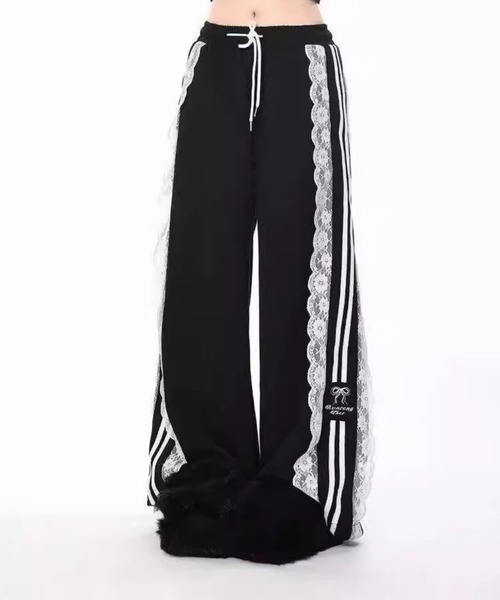 【レースが映えるサイドラインデザイン】スポーティーなラインデザインに繊細なレースを組み合わせた、存在感抜群のストレートパンツ。カジュアルな要素の中にフェミニンなディテールを落とし込み、甘辛バランスが絶妙な一本に仕上げました。 【美脚見えするストレートシルエット】程よくゆとりのあるストレートシルエットが脚のラインを拾いすぎず、自然にスタイルアップを叶えます。縦のラインを強調するデザインが視覚的に脚を長く見せ、トレンド感のある抜け感コーデを演出します。 【ウエストドロストで快適な穿き心地】ウエストはドローストリング仕様でサイズ調整が可能。リラックス感のある着用感も魅力です。スニーカー合わせでストリートに、ヒール合わせでモードにと、幅広いスタイリングが楽しめる万能アイテムです。 ※店頭及び屋外での撮影画像は、光の当たり具合で色味が違って見える場合があります。またご覧いただきますモニターや使用環境により実際の商品と多少色味が異なって表示される場合がございます。予めご了承をお願いいたします。★商品のお気に入り登録→【カートに入れる】右側の♡をクリック★ブランドのお気に入り登録→ブランドタグのページからお気に入りをクリック※ご注文いただいた予約商品のお届け時期の確認は、注文履歴ページより行えます。※セールは予告なく終了させていただく場合がございます。