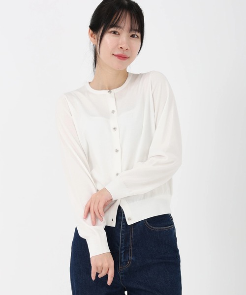 *サラフィール日差しに映える、アシンメトリーな「変形メタル釦」が目を引く一着。 ストロベリーフィールズらしい上品さはそのままに、少しエッジを効かせたボタンデザインが、いつものコーディネートに都会的なニュアンスを添えてくれます。 ■ 拘り抜いたシルエットと編地 えり、前立て、袖口、ポケット口には、さりげなく表情のある編地変化をプラス。 身頃と袖はシンプルな天竺+ガーター編みで仕上げているため、柄物のスカートやワンピースとも喧嘩せず、美しく馴染みます。 コンパクトな着丈と、二の腕を上品にカバーする5分袖。程よいゆとりのある身幅が、きれいめな印象の中に「大人のラフさ」を演出します。 ■ 夏を快適にする機能素材 触れるとさらりとした、夏に心地よい風合いが魅力。 しなやかなストレッチ性と、身体のラインを拾いすぎない程よいハリ感を兼ね備えており、一日中きれいなシルエットをキープします。 ■ 毎日手に取りたくなる利便性 ご自宅でのお手入れが可能なマシンウォッシャブル対応。 羽織りとしてはもちろん、ボタンを留めてプルオーバーとして着用するのもおすすめです。 オフィスでの冷房対策から、休日のお出かけまで。「普通」では物足りない、大人のこだわりを満たしてくれる万能カーディガンです。 《お気に入り登録》はお得がいっぱい! 「商品」のお気に入り登録で、再入荷、ラスト1点、セールなどお得な通知を受け取ることができます。 「ブランド」のお気に入り登録で、新商品や再入荷などいち早くブランドの情報を受け取ることができます。 是非、この機会にご登録くださいませ。