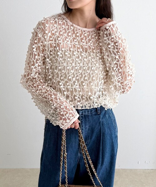◇fredy emue◇ 【2026 SS】 一枚で主役になるドット刺しゅうプルオーバー ●point ・全体に散りばめた立体的なドット刺しゅうが目を惹くプルオーバー ・ツブツブとした表情のある刺しゅうがシンプルなスタイリングに華やかさをプラス ・程よいシアー感があり、抜け感のある大人な印象に ・軽やかな素材感で、レイヤードもしやすく1枚で着映えします ・コーデに華やかさをプラスしてくれる頼れるアイテムです ・同素材のスカートと合わせれば統一感のあるスタイルが完成します (【6-0344-1-26-001】フォーカスドット刺繍スカート) 透け感:あり 裏地:なし 伸縮性:なし 光沢感:なし 洗濯:手洗い可 ◇商品のお気に入り登録◇ 気になる商品は、お気に入り登録がオススメです! クーポン情報、入荷情報が、通知されるようになります。 ※お手入れの際は、商品についている品質表示タグの取扱い表示をご確認ください。 ●お取扱い上のご注意● *商品を長くご愛用していただきたいため、アテンションタグがある場合は必ずご確認の上、着用又はお取り扱い下さい。 *画像の商品はサンプルとなりますので実際の商品と仕様(主にファスナー・釦等の付属品)、加工、サイズが若干異なる場合がございます。 *店頭及び屋外での撮影画像は、光の当たり具合で色味が違って見える場合があります。商品の色味は、スタジオ撮影の画像をご参照下さい。 *商品画像に関しては出来る限り忠実に表示出来るよう努めておりますが、お客様がご利用のモニターの設定及び特性により、実際の商品と比較し色味に若干の誤差が生じる場合があります。 *製品洗い加工の商品は、多少の歪み、シワなどが見られたり、風合いやサイズ等が1枚1枚異なります。汗や雨等で濡れた時や、摩擦により色落ちし、他の衣料を汚すことがありますので(特に濃色のもの)ご注意ください。 *この製品は、生地の特性上引っかかると糸が飛び出しやすい傾向があります。着用時にはベルトやバック、周囲の壁など表面の粗いものとの摩擦や引っかかりにご注意ください。 ※サンプルでの採寸のため、サイズ表はあくまで目安となります。予めご了承ください。