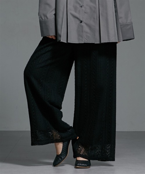 ■デザイン ・全体に施されたメッシュの透かし編みが軽やかで涼しげな印象 ・ゆったりと広がるワイドシルエットでリラックス感を演出 ・裏地付きで透け感を気にせず安心して着用可能 ・ウエストは総ゴム仕様でストレスフリーなフィット感 ・裾にかけての繊細な編み模様が上品さをプラス ■素材 ・柔らかく肌触りの良いニット素材を使用 ・通気性に優れた透かし編みで夏場も快適 ・軽量で長時間の着用も負担にならない仕上がり ■おすすめのスタイリング ・オーバーサイズトップスと合わせてゆる×ゆるの抜け感コーデに ・同系色のトップスでワントーンにまとめると洗練された印象に ・タンクトップやTシャツと合わせてリゾートライクに仕上げても◎ 【Soiunique/スワユニーク】唯一無二のアナタへ――― カジュアル×モードスタイルをベースに、 ストレスフリーなサイズ設計で どこかに”抜け感”と”格好よさ”を感じさせる商品をご提案。 体型カバーやスタイルアップも叶えつつ、 コンプレックスを個性にして自分のスタイルを貫く唯一無二のアナタへ。 <仕様> [表地]綿95%・レーヨン5%(織物)[裏地]綿100% レース柄の出方が多少異なる場合がございます。 透け感:あり 伸縮性:ややあり 生地の厚み:普通 光沢感:なし ウエスト:総ゴム 季節:春・秋向き シルエット:普通 <洗濯方法> 手洗い ■キーワード 20代、30代、40代、50代、60代、70代、、Soiunique、お洒落、かわいい、ぽっちゃり、ゆったりサイズ、ゆるっと、オーバーサイズ、オーバーシルエット、カジュアル、シンプル、スワユニーク、デイリー、パンツ、ベーシック、ボトム、メッシュ、モード、ラフ、レース、ワイドパンツ、体型カバー、定番、日常使い、日常着、春、普段着、楽ちん、秋、華奢見せ