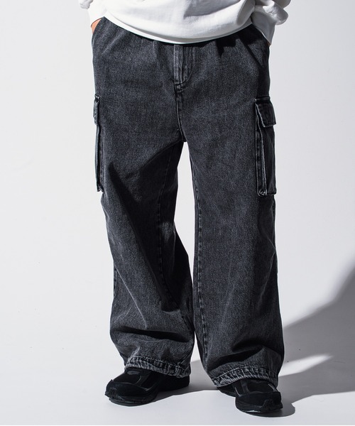 ♦【SHIFFON】Autumn / Winter Collection♦ ~WEB・直営店限定販売アイテム~ 程よいハリと柔らかさを兼ね備えたデニムパンツ。 コットンのナチュラルな風合いを活かしながら、ポリエステルをブレンドすることで軽さと耐久性をプラス。 デイリーに気兼ねなく穿ける、扱いやすい一本に仕上げました。 ゆったりとしたワイドシルエットが存在感を放ち、動くたびに自然なドレープを演出。 ストレスのない穿き心地で、ラフに合わせるだけで今っぽいバランスが完成します。 サイドには立体感のあるカーゴポケットを配置し、さりげないアクセントをプラス。 ヴィンテージ感のあるウォッシュ加工が、こなれた表情を引き立てます。 カジュアルはもちろん、きれいめトップスと合わせたミックススタイルにもおすすめ。 シーズンを問わず活躍する、着回し力抜群のデニムパンツです。 【Mark Gonzales / マーク ゴンザレス】 レジェンドスケーター マーク・ゴンザレス(MARK GONZALES)が自身の名前を冠し手掛けるブランドが「Mark Gonzales」。 様々な絵の具やマーカーペン、フォトコラージュ、独特の間違ったスペルの文字など独自の手法により創り上げられる、子供の心を持ち続けている彼ならではのメッセージ性に溢れた色彩豊かなユニークなデザインが魅力的。 10年以上も契約を続けるadidasのコラボスニーカーやNEW ERA、近年はSUPREME各店にMark Gonzalesの作品が必ず展示されるなど活動は非常に多彩で、世界中に多くのファンがいることでも知られている。 ATTENTION ※実測値のため、多少の誤差はご容赦ください。 ※商品写真はできる限り現品を再現するように心がけていますが、ご利用のモニターにより差異が生じます。 あらかじめご了承くださいませ。