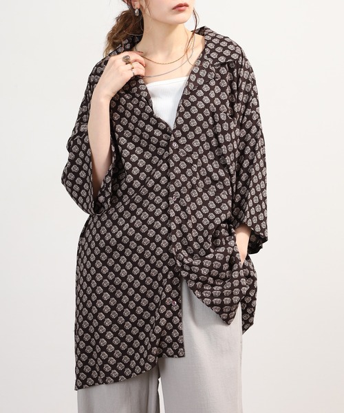 とろみ素材が映える旬のビッグシルエットオープンカラーシャツ ■point ゆったりとした身幅とドロップショルダーがリラクシングなムードを醸成。 個性豊かな総柄デザインで、夏の着こなしに彩りと遊び心をプラスします。 羽織としても活躍する万能な一着です。 ■fabric 滑らかで光沢感のあるレーヨン100%を使用。 とろみのある風合いがシャツ全体に上品な落ち感をもたらし、軽やかで涼しげな着心地を実現しています。 ■detail 特徴的な開襟スタイルにより首元をすっきりと見せつつ、半袖の総柄プリントが夏らしい爽やかさを演出。 前開き仕様で羽織りアイテムとしても活用できる汎用性が魅力です。 ■silhouette ビッグシルエットのリラックスフィットにより、肩の落ち感とゆったりとした身幅が今季トレンドの抜け感を体現。 動きやすさにも優れ、デイリーに快適な装いを提供します。 ■coordinate 春夏シーズンのスタイリングには、シンプルなホワイトやブラックのクルーネックTシャツをインナーに選び、ショートパンツやストレートシルエットのデニムパンツを合わせるのがおすすめです。 足元はキャンバススニーカーでカジュアルにまとめるとバランス良く、柄シャツが主役の軽快なコーディネートが完成します。 さらに、カゴバッグやバケットハットをプラスすることで季節感を引き立て、リゾートライクな雰囲気を楽しめます。 前開きで羽織れば、温度調節も容易にできるため、日中と夕方の気温差がある日にも最適です。 『OKシーン』 ・ビーチ・公園・ショッピングモール・カフェ・フェスティバル・バーベキュー・旅行先・マリンスポーツ施設・アウトドアキャンプ場・花火大会・音楽フェス会場・川辺・リゾートホテル・美術館・映画館・観光地・ビアガーデン・温泉街・街歩き・プレゼント・ギフト ================== 【お買いものをお楽しみいただく為の方法】 ================== ★商品のお気に入り登録★ ・再入荷通知、ラスト1点通知、セール通知が届きます。 ★ブランドのお気に入り登録★ ・新商品や再入荷など、お得な情報を受け取れます。 casual/shirt/Hawaiian/アロハシャツ/半袖シャツ/オープンカラーシャツ/ビッグシルエットシャツ/ドロップショルダー/春服/夏服/メンズシャツ/リゾートシャツ/開襟シャツ/総柄シャツ/幾何学模様シャツ/涼しいシャツ/ゆったりシャツ/春物/夏物