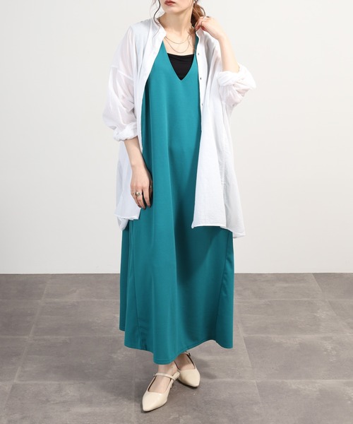 アムンゼン素材の深Vネックが映える軽やかフレアジャンパードレス ■point 細やかな梨地の凹凸が特徴のアムンゼン素材を使用した、軽やかでしわになりにくいジャンパードレス。 深めのVネックラインが顔まわりをすっきりと演出し、女性らしいエレガントなシルエットを楽しめます。 レイヤードスタイルにも最適な一着です。 ■fabric ポリエステルを主体にポリウレタンを混紡したストレッチ性のあるアムンゼン生地は、細かな梨地で表面に独特の凹凸感があり、肌ざわりはさらりと軽快。 シワになりにくく、日常の動きにもストレスフリーな快適さを提供します。 ■detail 深いVネックがデコルテを美しく見せ、女性らしい雰囲気を演出。 肩ひもが細めでバランス良く仕上げられ、裾に向かって自然に広がるフレアシルエットが軽やかな動きをもたらします。 シンプルながらも品のある仕立てです。 ■silhouette ウエストから裾にかけてふんわりと広がるフレアラインが特徴的で、女性らしい曲線美を引き立てます。 ジャンパースカートのフォルムによりレイヤードしやすく、シャツやインナーと重ねることで多彩な着こなしが可能です。 ■coordinate 春の軽やかな季節には、薄手のハイネックニットや長袖ブラウスをインナーに合わせるレイヤードコーディネートがおすすめ。 足元はローファーやローヒールパンプスを選ぶことで上品さをキープしつつも動きやすく仕上がります。 シンプルなカーディガンやジャケットを羽織ると洗練された都会的な印象に。 グリーンの柔らかな色味はベージュやホワイト、ブラウンと合わせるとナチュラルで落ち着いたトーンになり、大人の女性らしい優しい着こなしが楽しめます。 バッグはミニクロスボディやレザー素材のトートがバランスよくマッチし、デイリーからオフィスカジュアルまで幅広いシーンに対応可能です。 『OKシーン』 ・春の公園・オフィス・カフェ・ショッピングモール・美術館・図書館・映画館・ギャラリー・レストラン・ホテルロビー・空港・電車内・セミナー会場・イベントホール・デパート・結婚式・女子会・展覧会・ビジネスミーティング・プレゼント・ギフト ================== 【お買いものをお楽しみいただく為の方法】 ================== ★商品のお気に入り登録★ ・再入荷通知、ラスト1点通知、セール通知が届きます。 ★ブランドのお気に入り登録★ ・新商品や再入荷など、お得な情報を受け取れます。 Vネック/jumper/dress/ジャンパースカート/レディース/フレア/無地/春服/夏服/軽量/シワになりにくい/レイヤード/グリーン/女性用/カジュアル/通勤/通学/春物/夏物