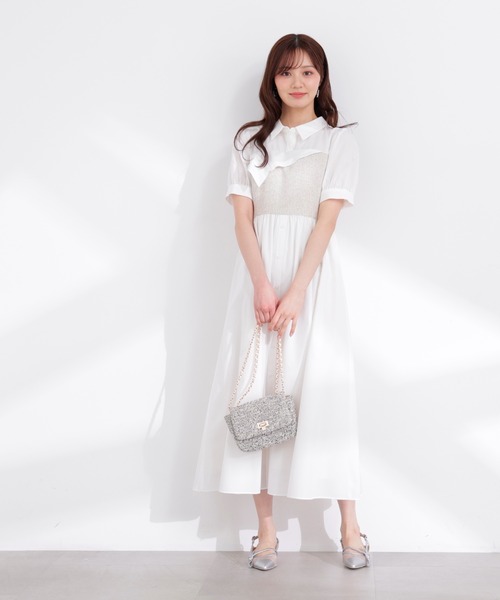 <petit size> 通常のSサイズやMサイズから着丈などの長さを短くリサイズし、 152cm Aroundの小柄さんにもバランスよく着用いただけるサイズに仕上げています。 ZOZO・official site・店舗のみの限定展開です。PS(商品によってはPM/PXSの展開あり)でのサイズ表記になっています。 見せかけのスプリングツイードビスチェを合わせた、レイヤード風デザインのシャツワンピース。 一枚仕立てで動きやすさとお洒落を叶えてくれます。後ろリボンもアクセント。 微配色なので甘くなりすぎず、デイリーに着用いただけます。 <素材> スプリングツイードとブロード素材を使用しています。 <詳細> 仕様・後ろファスナー 裏地・あり 透け感・なし / 光沢・なし / 伸縮性・なし 生地の厚さ・普通 ※モデルの着用画像の場合、光の当たり具合により、実際の色味と異なって見えることがございます。 色味は、商品単体の画像をご参照ください。 <商品のお気に入り登録> お気に入りアイテムの値下げ・再入荷・在庫1点などの通知を受け取ることができる 便利機能ですので気に入ったアイテムはお気に入り登録がおすすめ! <ショップのお気に入り登録> 新商品や再入荷、セール、クーポン配布などお得な情報を受け取ることができます。 ●撮影はサンプル商品で行っている為、仕様とサイズが異なる場合がございます。 ●スタジオ及び屋外で撮影した着用画像は、光の当たり具合で色味が違って見える場合があります。予めご了承ください。