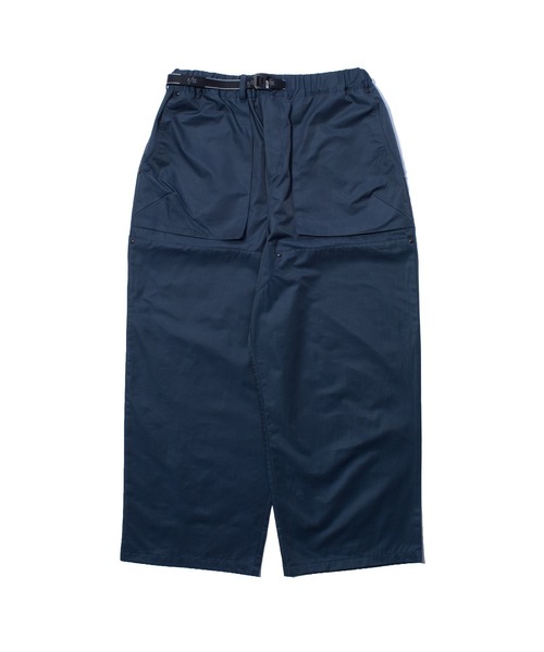塩縮加工した光沢のあるナイロンコットン生地のワイドワークパンツ。ナチュラルな光沢感のある生地を使用することで、カジュアルさとラグジュアリーな雰囲気を掛け合わせたモダンな印象に仕上がりました。立体的なポケットが特徴的です。 環境に配慮した撥水素材 ギミックを用いたサイドポケット