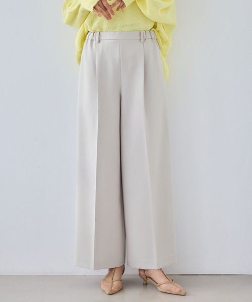 きれいめで万能なセンタープレスのワイドパンツ ・ウエストはぐるっとゴム仕様で履きやすさが魅力 ・センタープレスで足がすっきり見えるデザインも嬉しいポイント ・通勤コーデにも活躍のきれいめワイドパンツ ・ベルトループもあるのでアクセントに 【スタイリング】 上品な表面感なので、通勤でも活躍する優秀アイテム。 ベルトをしてトップスをインするとバランスが腰位置を高く見せてくれるのでおすすめ。 ペーパー素材のニットとの相性も良く、品のあるバランスに仕上がります。 【素材】 お手入れ方法:マシンウォッシャブル 二重織のきれいめな素材感。 【原産国】 中国 お買い物をお得にもっと楽しく!上手な活用方法>>> ▼商品のお気に入り登録▼ 完売カラーの再入荷通知や、ラスト1点の通知、プライスダウンしたセール通知も受け取ることができます。 ▼ブランドのお気に入り登録▼ 新作や再入荷等、いち早くブランドのお得な情報を受け取ることができます。 【ご注意】 ※屋外の光や照明の当たり具合で、実際の商品の色味とカラー別画像の色味に若干の違いが発生する場合がございます。 詳細画像と併せてご確認の上、ご注文いただきますようお願い致します。 ※サンプルにて撮影をしておりますので、実際の商品とは色味・仕様や加工・サイズ等が若干異なる場合がございます。 予めご了承くださいませ。
