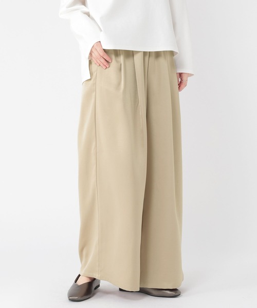 綺麗めにもカジュアルにも着こなせる 広がりすぎない綺麗なシルエットのワイドパンツ ーーー 【素材】 光沢が少ないマットなサテン生地を使用。 程よいハリ感としなやかさが特徴です。 【デザイン】 春のスタイリングの主役にぴったりなイージーワイドパンツ。 ウエストにタックを施している為、気になる腰回りをさりげなくカバーし、ゴム仕様なので着心地も◎ 合わせるアイテム次第でカジュアルにも綺麗めにも着こなせるので、スタイリングの幅が広がります。 ボトム パンツ イージーパンツ ワイドパンツ サテン ーーー 【スタイリング】 シャツやブラウスを合わせた大人な綺麗めコーデがおすすめ。 Tシャツやスウェットなど、カジュアルなアイテムを合わせてもバランスよく着こなせます。