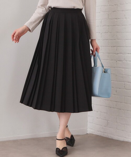 ビット付きダブルプリーツスカート【洗濯機OK/イージーアイロン】 【デザイン】 ・ビット付きのダブルプリーツが優雅な印象を与える、洗練されたスカート。 ・プレーンなカラーがコーディネートの幅を広げ、シーンを選ばず活躍。 ・裾に向かって広がるシルエットが、エレガントに脚線を引き立て、動きに合わせて美しいラインを演出。 ・バックウエストにはゴム入りで、きちんと見えつつもリラクシーな履き心地です。 ・ウエスト部分のサイドにゴールドのビットが施され、スタイリッシュさを際立たせます。 ・シンプルでありながらも、細部にこだわったデザインが魅力的です。 【素材】 ・素材は高密度な平織りの合繊素材で、動きやすく快適な着用感を提供。 ・しっかりとした生地感ながら軽やかさもあり、シーズンレスで着用可能。 ・イージーアイロン仕様で、シワになりにくく、いつでも美しい状態をキープ。 ・洗濯機OKで、日常使いに嬉しいお手入れのしやすさを実現。 【仕様】 ・ポケットなし ・左脇ファスナー ・ウエスト後ろゴム ・裏地あり ※ライトベージュ(051)はやや透け感があります。 ※照明の関係により、実際よりも色味が違って見える場合があります。また、パソコン・スマートフォンなどの環境により、若干製品と画像のカラーが異なる場合もございます。 モデル情報:身長166cm B80 W62 H86 着用サイズ:38(M) 店舗へのお問い合わせ商品番号:C58-75021 ●製品寸法: 36(S):W62~66cm H90cm 総丈75cm 38(M):W63~67cm H93cm 総丈76cm 40(L):W66~70cm H96cm 総丈77cm 42(LL):W70~74cm H100cm 総丈78cm 備考: