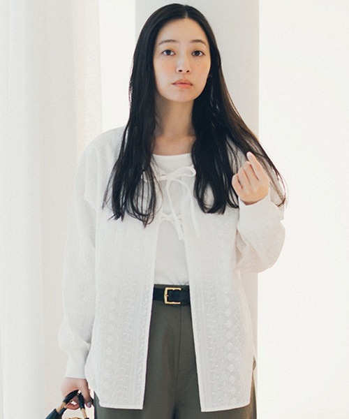 レイヤード見えの新鮮なドッキングデザイン 前後2WAY仕様のドッキングプルオーバー ーーー 【素材】 コットン刺繍レース×天竺のドッキングデザイン。 お袖と後身頃に刺繍生地を使用しています。 後身頃は内側に天竺を重ねています。 【デザイン】 コットン刺繍レース×天竺のドッキングプルオーバー。 レイヤードしているような見え方で、透け感やインナーを気にせず、一枚で気軽にご着用いただけます。 前後2WAY仕様なのでお好みやコーデに合わせて着こなしを変えられるのも嬉しいポイント◎ トップス カットソー レース 2WAY ーーー 【スタイリング】 デニムや綺麗めパンツなど、パンツ合わせがおすすめです。 デニムやチノパン合わせの大人なカジュアルスタイリングが◎