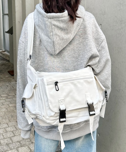 A4サイズ対応で通勤通学にもオススメ! 収納力抜群のショルダーバッグが登場! ■Point ポケットが沢山あるのが魅力的な収納力抜群のショルダーバッグ! A4サイズのPCやノートも収納できるので、通勤通学はもちろん、レジャーやテーマパークなど様々なシーンで活躍♡ 小さいポケットから大きいポケットまで沢山ついていて、無くしやすいも小物も整理しやすい! 軽くて丈夫な素材なので、長時間持っていても疲れにくいのが嬉しいポイント! ショルダー紐は長さ調節が可能なので、肩掛けも斜め掛けも可能です◎ どんなシーンでも使える定番のホワイト、ブラックの2色展開です! ―――――― <内容量> ・A4対応:〇 ・iPhone:〇 ・14inchノートパソコン:◯ ・手帳:〇 ・長財布:〇 ・折りたたみ傘:〇 ・ペットボトル横向き(500ml):◯ ・ペットボトル縦向き(500ml):◯ <ポケット> 内装ポケット:× 外装ポケット:4つ ―――――― 【CLEA/クレア】 毎日のシンプルスタイルを、さりげなくオシャレに。 casual fashion every day to you. . . シンプルだけど、どこか女性らしい。 さりげないのに、なんだかオシャレ。 上品さと抜け感のある、 大人カジュアルスタイルをご提案します。 ※ご覧のモニター・撮影環境により実際の商品と多少色味が異なって見える場合がございます。 予めご了承をお願いいたします。 【お買い物をよりお楽しみいただく為に!】 ▼商品のお気に入り登録ハートをクリック! 完売カラーの再入荷や、ラスト1点の通知、セールの際の通知を受ける事ができます。 ▼ブランドのお気に入り登録 新商品や再入荷など、いち早くブランドのお得な情報を受け取ることができます。
