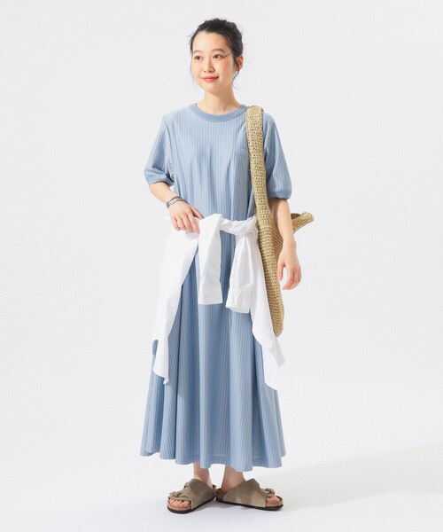 1着でスタイルアップを叶えるワンピース■デザイン毎シーズンご好評いただいている〈BEAMS BOY(ビームス ボーイ)〉夏の定番アイテムが今年も登場。今シーズンは、ストライプの入り方を一新。メインのカラーラインに寄り添うよう、薄いブルーグレーのラインを走らせることで、柄に立体感と奥行きを出しました。1枚でサマになる美シルエットと、日常に寄り添うリラックスした着心地を両立させた、夏のワードローブに欠かせないひと品です。■コーディネートさらりと1枚で纏うだけで、夏のスタイリングが完成する心強いアイテム。肌寒い時期は、シンプルなカーディガンやシャツを羽織るだけで、奥行きのある柄が程よいアクセントになります。また、ベストを重ねたレイヤードスタイルなど、小物次第で自由自在なアレンジを楽しめます。■サイズストレスフリーな着心地ながら、マキシ丈の縦長効果ですっきりと見せてくれるのが嬉しいポイント。■素材カットソー素材でありながら、適度なハリ感を持たせることで美しいAラインシルエットをしっかりとキープします。■ケア方法手洗い可(詳細は商品についている品質表示ラベルをご覧ください)【BLACK_ST・SAX_ST】BEAMS STAFF:H159 Size:1【OLIVE_ST】Model : H164 B72 W59 H85 Size : 1※アイテムサイズは商品サンプルを採寸しているため、実際の商品と多少の誤差が生じる場合がございます。※画像の商品はサンプルのため、実際の商品と「仕様」「色合い」が異なる場合がございます。