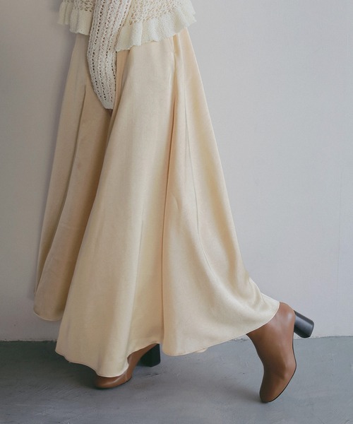 上品な光沢感がありながら、派手すぎない滑らかなスムースサテン生地を使用したロングスカート。 落ち感のある素材が美しい縦ラインをつくり、スタイルアップを叶えます。ほどよく広がるシンプルなAラインシルエットで、女性らしさとすっきり感を両立。 フロントはフラット仕様のため、トップスをインしてもきれいに決まり、 後ろウエストはゴム仕様で、見た目以上に快適な穿き心地です。両サイドにはスリットポケット付きで、実用性も◎。 裏地なしの一枚仕立てで軽やかに着用でき、透け感を気にせず着られるのも嬉しいポイントです。シンプルなデザインでさまざまなトップスと好相性。 ロングシーズン活躍する、着回し力の高い大人のサテンスカートです。 _________ 透け感:ライトイエローのみややあり 裏地:なし 厚さ:薄め 伸縮性:なし お手入れ方法:手洗い推奨 _________ 【ATTENTION】 商品写真はできる限り現品を再現するように心がけていますが、ご利用のモニターにより差異が生じます。サイズや重さなどに多少の個体差が生じる場合がございます。製品の仕様およびデザインは改善等のため、予告なく変更する場合がございます。