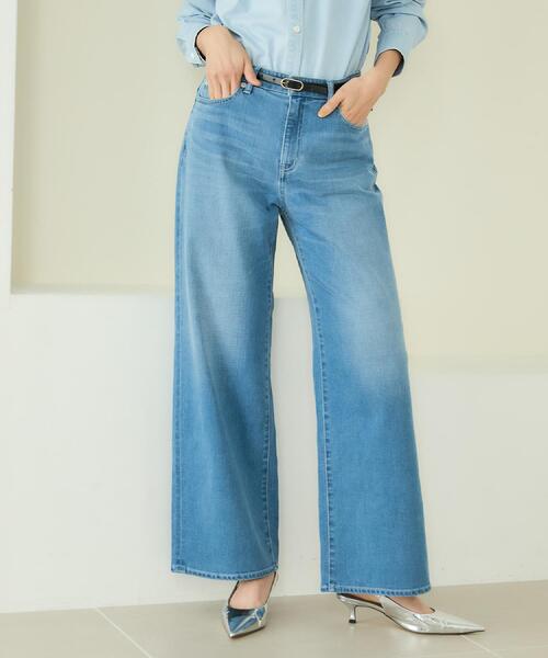 ======MAKE×DENIM===== (メイクデニム) UNTITLEDが本気でつくったデニムが苦手な方にもおすすめの1本! 【デザイン】 トレンドのワイドシルエットで、リラックス感とスタイリッシュさを両立した一本。 デニムならではの質感に自然なダメージ加工を施し、程よいヴィンテージ感もプラスしました。 キレイめの素材感が、シーンを問わず心地よく穿きこなせます。 毎日のスタイリングに新しい風を吹き込むアイテムです。 シルエットにこだわり、体型・穿き方を選ばずきれいに見えるように研究しておつくりしました。 穿き心地とデザイン性を両立した、スタイリングの主役になる1本です。 【素材感】 ペットボトルなどの原料からつくられた再生ポリエステル糸である「REPREVE(R)」を緯糸に使用しているサスティナブルなデニム素材。 吸放湿性に優れ、従来品のデニムと比較して余分な湿気を逃すため蒸れにくい状態を保つ素材を使用しており、快適な穿き心地が特徴です。 適度なストレッチ感で柔らかく、機能性も併せ持った、アンタイトルが本気で考えたデニムになります。 【仕様】 ・ポケット数:横×3 後ろ×2 ・前ファスナー ・裏地なし ※照明の関係により、実際よりも色味が違って見える場合があります。また、パソコン・スマートフォンなどの環境により、若干製品と画像のカラーが異なる場合もございます。 モデル情報:身長163cm B80 W59 H82 着用サイズ:02(M) 店舗へのお問い合わせ商品番号:153-65309 ●製品寸法: 00(XS):W68cm H87cm 股下64cm 前股上25cm 渡り幅30cm 裾幅25cm 01(S):W71cm H90cm 股下73cm 前股上26cm 渡り幅31cm 裾幅26cm 02(M):W75cm H94cm 股下73cm 前股上26cm 渡り幅32cm 裾幅27cm 03(L):W78cm H97cm 股下74cm 前股上27cm 渡り幅33cm 裾幅28cm 04(2LT):W81cm H100cm 股下74cm 前股上27cm 渡り幅34cm 裾幅29cm 42(2L):W85cm H104cm 股下73cm 前股上28cm 渡り幅36cm 裾幅30cm 44(3L):W89cm H108cm 股下73cm 前股上29cm 渡り幅37cm 裾幅31cm 46(4L):W93cm H112cm 股下73cm 前股上30cm 渡り幅38cm 裾幅31cm 48(5L):W97cm H116cm 股下73cm 前股上31cm 渡り幅39cm 裾幅32cm 50(6L):W101cm H120cm 股下73cm 前股上32cm 渡り幅41cm 裾幅32cm 備考: