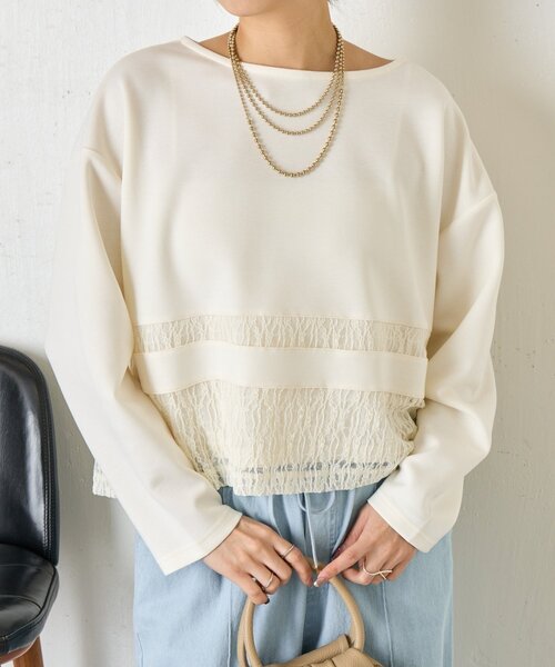 -商品ポイント- ・カジュアルな印象のスウェット素材に、繊細で甘すぎない上品なレースをあしらった大人のカットソー。 ・ゆったりとしたシルエットで、リラックスした着心地です。 ・レースの異素材により、着るだけでこなれ感を演出できます。 ーマテリアルー ■透け感:裾のレース部分のみあり ■裏地:レース部分のみあり ■伸縮性:なし ■光沢感:なし ー洗濯方法ー 手洗い可能 ー注意事項ー ・画像の商品はサンプルです。 実際の商品と仕様、加工が若干異なる場合があります。 ・サイズ表記はあくまで目安となります。 【お買い物をよりお楽しみいただくために】 ―気になるアイテムはお気に入り登録をしておくと便利です― ・お気に入り登録した商品はメニューの「♡お気に入り」ボタンから、一覧表示することができます。 ・商品の再入荷・在庫ラスト1点などの情報を受け取ることができます。 ・値下げやクーポン情報を受け取ることができます。 ・予約商品は通常商品切り替わり時にお知らせがきます。 スマートフォンの場合・・・商品画像右上に表示されている「♡」をタップしてください。 パソコンの場合・・・「カートに入れる」ボタン横に表示されている「♡」をクリックしてください。 ーPALCLOSETアプリのブランドフォローがおすすめですー ・新商品やお得な情報をいち早くcheckする事が出来ます。 ・スタッフコーディネートや店舗ごとのブログをお楽しみ頂けます。 __________________________________ ※取り扱いについては、商品についている品質表示でご確認ください。 ※照明の関係により、実際よりも色味が違って見える場合があります。 またパソコン・スマートフォンなどの環境により、若干製品と画像のカラーが異なる場合もございます。予めご了承ください。 ※詳細画像の色合いをご参照ください。予めご了承ください。