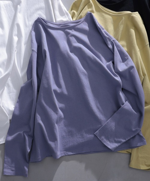 ブラウス好きのためのロンT 「ブラウスの中、なに着ればいい…!?」 ブラウス好きが、そこんとこ本気で考えました。 チラッと見えるところは上品でいたいから、 襟元や袖はほどよくきちんと。 大好きなブラウスやワンピと相性ばっちりです! シルエットはロンTみたいにゆるっとしてるから、着心地はとってもラクチン。 ただの「インナー」で終わらないから 今日も明日も、このロンTに甘えちゃいます! 【仕様について】 ・裏地:なし ・ポケット:なし ・厚み:薄い ・伸縮性:ややあり ・透け感:薄い色のみやや透ける ・重量:240g(Mサイズ) 【お洗濯について】 ※お洗濯やお取扱いについては、商品についている品質表示タグをご確認ください。 ・ご家庭では手洗いのみOK ・(家庭用洗濯機でのお洗濯はお避け下さい) ・蛍光増白剤 漂白剤入り洗剤不可 ・タンブラー乾燥はお避けください。 ・ネット使用 ※湿気を含んだ状態や水を含んだまま放置しないでください。 ※アイロンをかける際はあて布をご利用ください。 ※素材の特性上や保管上、お届け時に生地にたたみジワや一部白っぽく見える「アタリ」が生じる場合がございます。いずれも一度お洗濯をしていただくか、スチームアイロンの蒸気で改善されることがほとんどですので一度お試しくださいませ。 ------------------------------ ※商品画像は、光の当たり具合や パソコン・スマートフォンなどの閲覧環境により、実際の色味と異なって見える場合がございます。予めご了承ください。 ※商品の色味は、商品単体の画像をご参照ください。