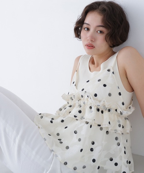 【N.(N. Natural Beauty Basic)】NATURAL BEAUTY BASICカジュアルライン。カジュアルなテイストな中に、女子っぽさをプラスした、 大人カジュアルスタイルを提案します。カットジャガード素材にドットプリントを施した、ほどよくカジュアルな印象のキャミビスチェ。透け感のある軽やかな素材感で、胸元のギャザーフリルがポイントです。後ろは長さ調整可能なアジャスターが付いています。<素材>毛足のある素材にインクジェットプリントを施しており、プリントされていない部分がランダムに出る特徴があります。<詳細>仕様・開閉なし裏地・あり透け感・ややあり / 光沢・なし / 伸縮性・なし生地の厚さ・薄手●取り扱いについては、商品についている品質表示でご確認ください。●撮影はサンプル商品で行っている為、仕様とサイズが異なる場合がございます。●スタジオ及び屋外で撮影した着用画像は、光の当たり具合やご覧のモニターによって色味が違って見える場合があります。予めご了承ください。●生産時期により色・素材・サイズ感など多少異なる場合がございます。予めご了承ください。〇返品・キャンセルについて・着用・洗濯後の返品・ご交換は致しかねます。・商品到着後、着用または使用前に商品を確認して頂きますようお願いいたします。≪お買い物をよりお楽しみいただくために!≫・「商品のお気に入り登録」再入荷通知や、ラストの通知、セール通知も受け取ることができます。・「ブランドのお気に入り登録」新商品や再入荷をはじめ、タイムセールやクーポンなどいち早くブランドお得な情報を受け取ることができます。