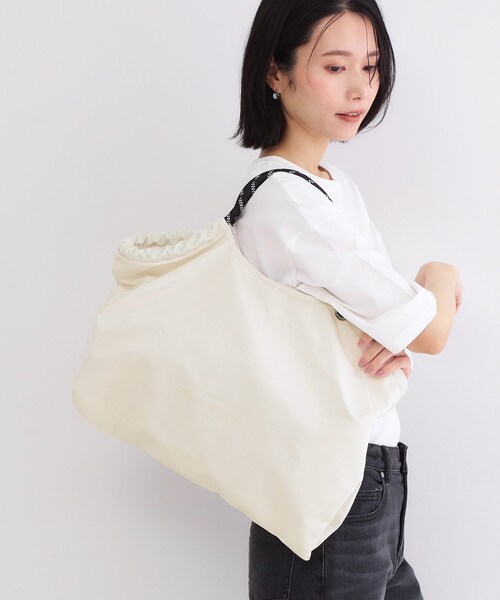 軽量で収納力も◎!日常使いしやすい大人気のBIGサイズのトートバッグ ・本体表地とポケット部分はデイリー使いしやすいポリエステル素材を使用 ・持ち手部分はロープ調のデザインハンドルで、持ち手を絞って肩掛けとしても使用可能 ・軽量でA4サイズ対応の大容量サイズが嬉しいポイント ・同色のロゴプリントがさりげなく、大人っぽさと上品感があります ・外側と内側に各1つずつポケットが付いているので、さっと取り出したい小物の収納に便利です ・カラビナ付きなので、トレンドのチャームなどを取り付けてアレンジも楽しめます ■肩掛け可能 ■A4サイズ対応 【仕様】 ・ポケット数:内側×1 外側×1 ※照明の関係により、実際よりも色味が違って見える場合があります。また、パソコン・スマートフォンなどの環境により、若干製品と画像のカラーが異なる場合もございます。 店舗へのお問い合わせ商品番号:C71-15041 ●製品寸法: 00:高さ36cm 幅(上部)52cm 幅(下部)41cm マチ14cm 持ち手上がり11cm 付属チャーム全長6cm カラビナ部直径3cm モチーフ直径2.5cm 備考:重量:約265g