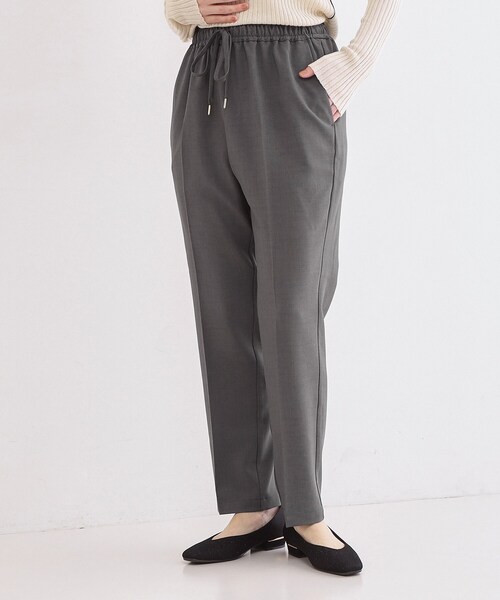 きちんと感がありながら、楽に穿ける! 穿き心地の良さと機能性にこだわった、美脚イージーテーパードパンツ 【デザイン】 ・シルエットに徹底してこだわった、イージーウエストタイプのテーパードパンツ。 ・すっきりとさせた腰回りから、裾にかけてキレイにテーパードする美脚シルエット。 ・ウエストはゴム仕様でイージーな穿き心地。ゴム周りのギャザー分量を計算し、着用した際にもたつかずスッキリとしたバランスに。 ・ドローコード入りでウエスト位置の調整も可能。 ・センタープレス入りでさらに脚長&キレイ見え効果をプラス。 ※同素材で、イージーワイドパンツ(637ー65059)もお作りしております。 【素材】 ・梳毛調のポリエステル素材で、オールシーズン着まわせる素材感です。 ・きちんと感がありながら、イージーウエスト&ストレッチ性もある素材を使用しているので、穿き心地も快適。 ・マシンウォッシャブルでご自宅でのお洗濯も可能。 【仕様】 ・ポケット数:横×2 後ろ(ダミー)×2 ・ウエスト総ゴム ・裏地なし ※こちらの商品はやや透け感があるため、インナーの着用をおすすめします。 ※照明の関係により、実際よりも色味が違って見える場合があります。また、パソコン・スマートフォンなどの環境により、若干製品と画像のカラーが異なる場合もございます。 店舗へのお問い合わせ商品番号:637-65058 ●製品寸法: 34(SS):W~64cm H82cm 股下64cm 前股上29cm 渡り幅27cm 裾幅16cm 36(S):W~67cm H85cm 股下64cm 前股上29cm 渡り幅28cm 裾幅16cm 38(M):W~70cm H88cm 股下65cm 前股上30cm 渡り幅29cm 裾幅17cm 40(L):W~73cm H91cm 股下66cm 前股上31cm 渡り幅30cm 裾幅17cm 42(LL):W~76cm H94cm 股下67cm 前股上32cm 渡り幅31cm 裾幅18cm 備考: