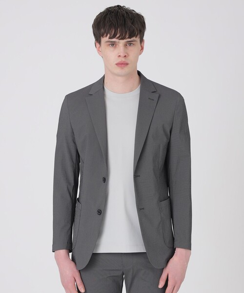 【高級感とカジュアルさを両立したシアサッカージャケット】軽量テクニカルシアサッカー素材を使用したパッチポケットデザインのカジュアルジャケット。袖裏や肩パット、固い芯地を使用しないことで、軽さと快適な着心地を併せ持ったアンコン仕様です。シャツ感覚でさらりと羽織れ、ベーシックなデザインの為、幅広いシーンでの着用が可能です。マシンウォッシャブル対応のイージーケアアイテム。表地には細かい凹凸の入った、マイクロシアサッカー素材を使用しています。ナイロンとポリエステルを掛け合わせて染め分けることで、深みのあるカラー構成を実現。細かい繊細な凹凸が肌離れの良さと清涼感を引き出し、ドライな風合いと軽やかな着心地、ストレスフリーなストレッチ性が特徴の快適素材です。同素材のトラウザーズ:51R12722