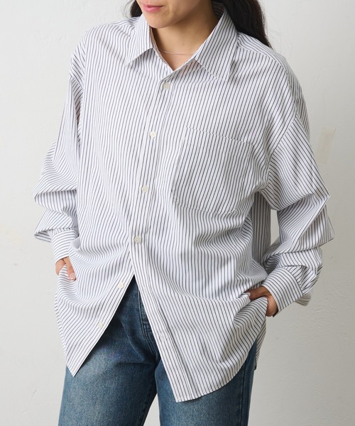 【ベーシックなデザインで多様に活躍する上品なストライプシャツ】 一着で着るのはもちろん、ボタンを開けて羽織りとしても着用可能なアイテム。 シーンやスタイリングを問わず、カジュアルからキレイ目まで様々なスタイリングに使って頂けます。 【商品ポイント】 ・上品なストライプ ・程よいオーバーサイズ ・羽織りとしても万能なデザイン ---------------------------------------------------- ■商品特徴 洗 濯 方 法 :洗濯機洗い可(弱) 裏 地 :なし 透 け 感 :なし 伸 縮 性 :なし 光 沢 感 :なし 生地の厚さ:普通 ---------------------------------------------------- ■素材 ポリエステル 67%, レーヨン 17% 綿 16% ---------------------------------------------------- ※着用、お取り扱いの際は、商品についている品質表示とアテンションタグを必ずご確認下さい。 ※商品タグに記載されている商品名がWEBでの表記名と異なる場合があります。 ※実際の商品と仕様、加工、サイズが若干異なる場合がございます。 ※照明の関係により、実際よりもやや明るく見える場合がございます。 またパソコンなどの環境により、若干製品と画像のカラーが異なる場合もございます。予めご了承くださいませ。 【お気に入り登録】してお得な情報をCHECK!! ・「商品のお気に入り登録」で再入荷通知や、ラストの通知、セール通知も受け取ることができます。 ・「ブランドのお気に入り登録」で新商品や再入荷など、お得な情報を受け取ることができます。