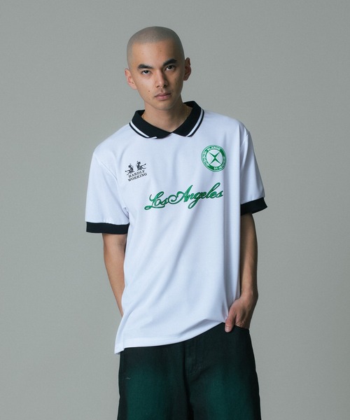 【ディテール】・ストリート感あふれるクラシックなサッカーシャツ・軽量で速乾性に優れたポリエステル生地で、快適な着心地・フロントのオリジナルグラフィックプリントが目を引くデザイン・一枚で着ても、レイヤードでも着回しが楽しめる・透け感:ややあり・裏地:なし・生地の厚さ:普通・伸縮性:あり・シルエット:ベーシック※ホワイトで計測しています。【取り扱い注意事項】・アテンションタグ・洗濯表示を必ずご確認の上、ご使用下さい。・摩擦により他の物に色移りすることがあります。・プリント部分は永久的なものでは無く、もまれたり擦られたりしますと徐々に薄くなります。※画像の商品は光の照射や角度により、実物と色味が異なる場合がございます。また表示のサイズ感と実物は若干異なる場合もございますので、予めご了承ください。※商品の色味の目安は、商品単体の画像をご参照ください。※画像の商品はサンプルとなります。実際の商品と色味、仕様、加工、サイズ、素材等が若干異なる場合がございます。※予約商品など一部商品につきましては、生産の都合上、お届け時期が前後する場合がございます。【お気に入り登録のオススメ!】▼商品のお気に入り登録 完売カラーの再入荷通知や、ラスト1点、セールの通知をお知らせします。▼お気に入りショップに追加 新商品や再入荷など、いち早くブランドの情報を受け取ることができます。