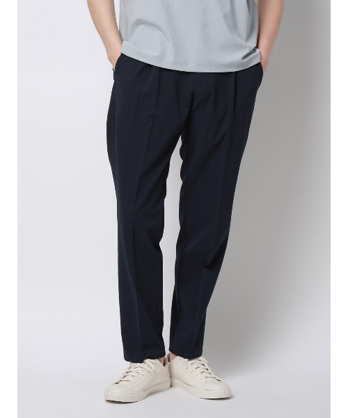 境界線をなくす、ちょうどいい服 ~FLAT(フラット)~ ドレスとカジュアル、オンとオフ、仕事と私生活。分けられていた「線」をやさしく溶かしてフラットに。自由でいて適当に見えない、"大人のニュートラル"。 凹凸のあるシアサッカー素材が、汗ばむ季節でもさらりと快適な着心地をキープする1タックパンツ。機能的なサイドポケットを備えながらも、スッキリとしたテーパードシルエットに仕上げました。清涼感のある軽快な穿き心地と、ドレスパンツのような端正な佇まいを両立した一着です。 ・肌との接触を減らす凹凸のある表面組織により、ドライで清涼感あふれる着用感を実現 ・1タックによるリラックスしたはき心地と、美脚を叶えるテーパードシルエットを両立 ・腰回りに配した6ポケット。サイドに設置したポケットはスマホなどのデバイスがぴったり入り、座った時に邪魔にならない ・ストレッチ性に優れたスポーティーな素材感ながら、全体をミニマルにまとめることで、オフィスから休日までシームレスに対応 ・家庭洗濯が可能でシワも気になりにくく、清潔感をキープできるイージーケア性 *セット着用可(シャツ、パンツは別売りとなります。) 半袖シャツ:FLSSSH001 長袖シャツ:FLSSSH003 ハーフパンツ:FLSSP004 【仕様】ワンタック/テーパード/ウエスト:バックゴム 【裾】タタキ仕上げ(裾上げ済み) 【洗濯表示】洗濯機可(ネット使用・弱水流) 【おすすめシーン】 お出かけ、ショッピング ※お届けする商品の下げ札・タグに記載の数値は目安としてのヌードサイズ(体の寸法)のため上記表示と異なる場合がありますが、誤表記ではございません。 ※同サイズまたは同一商品でも、生産の過程で1.0cm~2.0cm程度の個体差や着用感の違いが生じる場合がございます。 ※カラー名は管理用の表記となります。実際の商品の色味は商品画像をご確認ください。 ※商品画像はできる限り実際の色に近づけて掲載しておりますが、パソコン環境により色味に誤差が生じる場合がございます。予めご了承下さいませ。