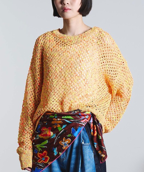 軽やかなメッシュ編みとポップカラーが映えるニットプルオーバー ・ジャンボノット糸を使用し、ざっくりとしたメッシュ編みで仕上げたプルオーバー ・空気を含んだような軽さとドライタッチで、肌離れの良さが魅力 ・シンプルなシルエットに目を引くカラーリングで、コーディネートの主役に ・Tシャツやタンクトップのレイヤードで、透け感のアレンジがしやすい ・オレンジ、ライトブルーの2色展開 商品特性 透け感 : あり 伸縮性 : あり 生地の厚さ : 普通 裏地 : なし スタッフレビュー ざっくりしたメッシュ編みが軽やかで、レイヤードが映えるニットです。 ジャンボノット糸の凹凸が表情をつくり、シンプルな合わせでも主役になりやすいです。 引っ掛けに注意しつつ、タンクトップやロゴTを重ねて透け感を楽しむとバランス良くまとまります。 mici 自分の好きなテイストを見極める力を持った、自立した女性に向け2017年9月にデビュー。 CasualとMode、FeminityとMasculinity ・・・相反するエレメントを素材とデザインで表現。 思わず手に取って自分のワードローブに加えてしまいたくなる、エッジの効いたカラーバランスや立体感のあるディテール。 ブランド名の「mici (ミチ) 」は、自分が「満ちる」 自分の「未知」なる可能性・・・「私」のまわりの様々な「ミチ」を表現。 自由に、自分らしくファッションを楽しむ女性へ上品なカジュアルアイテムを提案するブランドです。 お気に入り登録 ・商品のお気に入り登録 再入荷・残り1点・セールの通知を受け取ることができます。 ・ブランドのお気に入り登録 新商品・再入荷/・ショップおすすめトピックスなど、ブランドの情報を受け取ることができます。 取扱注意事項 ・洗濯の際はネットを使用して下さい。 ・蛍光増白剤が入っていない洗剤を使用して下さい。 ・洗濯は手洗いでお願いします。 ・長時間水に浸漬しないで下さい。 ・脱水は短時間で処理し形を整えて干して下さい。 ・素材の特性上、洗濯により多少の縮み、斜行が生じることがあります。 ・引っ掛かりにより糸が飛び出す恐れがあります。 ・ハンガーに掛けずに、たたんで保管して下さい。 ・長時間、光に当たりますと退色することがありますので保管場所等にご注意下さい。●もみ洗いは、避けて下さい。 モデルの着用画像の場合、光の当たり具合により、実際の色味と異なって見えることがございます。 色味は、商品生地の画像をご参照ください。