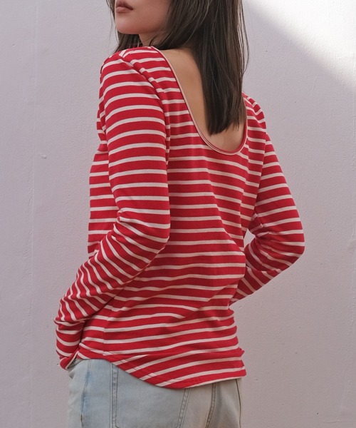大人カジュアルアイテムの定番ボーダーをバックオープンデザインで女性らしくアップデート 大胆に開けたバックデザインとすっきりとしたタイトシルエットが女性らしさを引き立てるボーダープルオーバー。 バックラウンドのカッティングにこだわり、ヘルシーな肌見せができるアイテムです。 長めの袖丈はさり気ないこなれ感をプラス。 後ろのみラウンドさせた前後差のある裾で、インもアウトも簡単に決まります。 肩には滑り止めのシリコンがついており、ずり落ちをカバーしてくれる機能も。 合わせるボトムスを選ばないデザインは、ワードローブに加えておきたい一枚です。 通勤、通学はもちろん、デートや女子会などのシーンにもおすすめの着映えする一枚。 --------------------------------- 透け感:ホワイト系のみややあり 裏地:なし 伸縮性:あり 光沢感:なし 生地の厚さ:普通 --------------------------------- ▼お取り扱い上の注意 ※お手入れの際は商品の縫込みネーム・アテンションを必ずご確認ください。 家庭洗濯〇(40℃限度。手洗いのみ) 漂白× タンブル乾燥× 日陰での平干し アイロン〇(低温110℃まで。スチームアイロン×) ドライクリーニング〇(弱い処理。石油系溶剤) ウェットクリーニング〇(非常に弱い処理) ・染色過程や素材の特性上、特有のにおいが残る場合ございます。気になる場合は陰干しか、お洗濯されることでにおいは減少いたします。 ・洗濯時、ネットを使用して下さい。 ・形をととのえてから干して下さい。 ・色物と白物一緒に洗濯しないで下さい。 この商品は、摩擦(特に湿った状態での摩擦)や、汗や雨などで濡れた時は他の衣料や下着(特に白物)に色移りする場合がありますので、十分ご注意下さい。 クリーニングの際は、多少色落ちすることがありますので、出来るだけ単品洗いをおすすめします。 また、他の淡色物に色移りすることがありますので、すみやかに処理(脱水・乾燥)するようお願いいたします。 以上の点を十分ご留意の上、お取扱い下さい。
