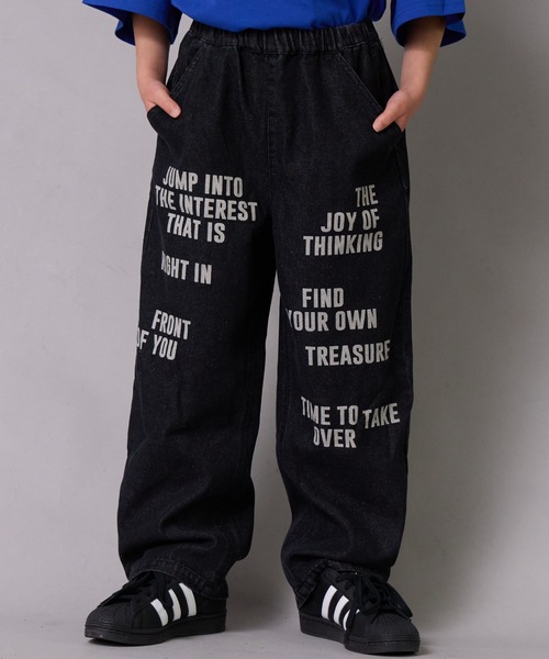 人気のロゴプリントパンツがデニム素材で新登場!程よくゆとりのあるストレートシルエットでコーディネートに取り入れやすいです。ウエストは総ゴム仕様で着やすさも◎【生地感】程よい厚さのデニム素材で、デイリー使いにピッタリです。【ポケット】あり(両サイド)【伸縮性】なし【透け感】透けない【クリーニング】洗濯機洗い可(ネット使用)【裏地】なし【濃色品・色落ち色移り】 濃色品は、色落ち・色移りをする恐れがあります。摩擦(特に湿った状態での摩擦)や汗や雨などで他の衣料や下着(特に白物)に色移りしますので、十分ご注意ください。 ※モニター・環境等により実際の商品と色味が多少異なって表示される場合がございます。 また、生産時期により色味が若干異なる場合がございます。予めご了承ください。