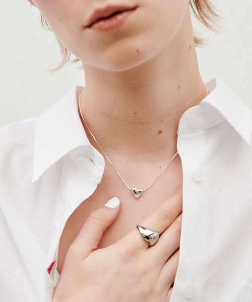 さりげなく身に着けられるハートモチーフネックレス【POINT】・スネイクチェーンがモードな印象を放つショートネックレス。・シルバー925の上品な輝きがチェーンとマッチして高級感を演出してくれます◎・ハートモチーフは、小ぶりでややいびつな形にしているので、甘くなりすぎません。・シンプルなデザインなのでお手持ちのアクセサリーと重ね付けも楽しめます。【素材】シルバー925【サイズ】40cm モチーフ1cm【気になる商品は「お気に入り」登録を】 ハートマークをクリックし、お好きなカラーを選んでお気に入りに登録すると入荷情報や残り1点の通知、完売カラーの再入荷、セール情報などを受け取ることができます。※撮影場所やお使いのモニター環境により若干お色味が異なる場合がございます。特にロケの撮影では明るく見える傾向にございます。詳細撮影画像で色味をお確かめくださいます様お願いいたします。※サンプルで撮影をしております。若干の仕様が変更になる場合がございますので予めご了承の上ご注文くださいますようお願いいたします。※サンプルでの採寸のためあくまで目安となります。予めご了承ください。≪返品・交換について≫・着用後、洗濯後の返品・交換は致しかねます。・商品到着後、着用前に商品状態のご確認をお願い致します。