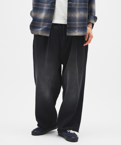 AGING FADE 2TUCK SWEAT PT 程よく色落ちしたエイジングフェード加工が特徴のスウェットパンツ。 フロントに2タックを入れることで、スウェットながら立体感のある上品なシルエットに仕上げています。 ゆとりのあるリラックスフィットで、快適な穿き心地とこなれた雰囲気を両立。 裾は切りっぱなし仕様でリブを排し、抜け感のある今の気分にフィットする仕上がりです。 ********************** 裏地:なし(裏毛) 伸縮性:あり 光沢感:なし 生地の厚さ:普通 ********************** ※取り扱いについては、商品についている取扱表示にてご確認下さい。 ※照明の関係により、実際よりも色味が違って見える場合があります。 またパソコン・スマートフォンなどの環境により、若干製品と画像のカラーが異なる場合もございます。 ※商品の色味は、商品アップ画像をご参照ください。