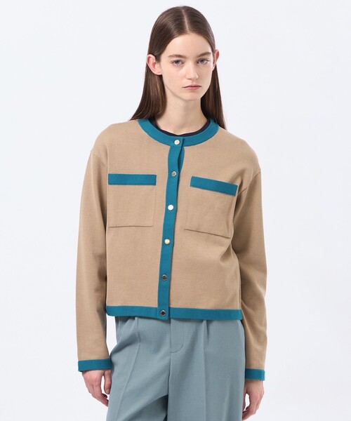 人気モデルのノーカラージャケット、ROYTON(ロイトン)。 ボクシーなシルエットをそのままに、ジャケットライクなカーディガンとして登場です。ドロップショルダーでタイトすぎないシルエットの中にゴールドボタンを施し、きちんと感のあるニットカーディガンに仕上げています。胸元のポケットはフラット仕様ですっきり仕上げています。 【素材】 コンパクトスパンで生産したコットンを3本撚りにしてガス焼きを施したイタリー糸の綿素材を使用し、天竺表目で編立てています。ガス焼きを施す事で毛羽を落とし、より綺麗な目面で仕上がる素材です。 おすすめ着用期間:春/秋 ※36サイズはオンラインストア、ルミネ新宿店、柏高島屋ステーションモール店、ジェイアール名古屋タカシマヤ店、山形屋店、博多阪急、阪神梅田本店のみでのお取扱いになります。 ※この商品はサンプルでの撮影を行っています。 実際の商品とイメージ、仕様が異なる場合がございます。