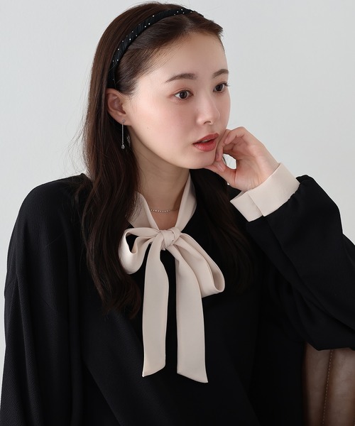 シャイニーサテン×きらめくメタルスタッズがおしゃれなカチューシャ ◦POINT シャイニーなシフォン素材に小さなシルバーのメタルスタッズが輝くカチューシャ。 ツイストした光沢のあるシフォン素材は落ち着きのあるカラーで上品な雰囲気。 小粒のメタルパーツが散りばめられたデザインは、パールやビジューは甘すぎる、という方におすすめ! 普段使いにも、結婚式やパーティーなどのオケージョンシーンにもおすすめです。 コーディネートにプラスするだけで、華やかな印象に仕上げてくれるアイテムです。 ◦STYLING おろした髪にさっとつけるだけでも華やかさUP ヘアアレンジのワンポイントになるのでアップヘアにもおすすめです。 ショートヘアなどアレンジのしにくい髪型もつけるだけでぐっとこなれた印象に。 カジュアルな服装で抜け感を出して普段使いも出来るので、活躍する事間違いなし。 ◦DETAIL メタルスタッズ [ 商品のお気に入り登録 ] 完売カラーの再入荷通知や、値下げのお知らせ、ラスト1点の通知などが受け取ることができます。 随時再入荷していますので、お気に入り登録して頂くと再入荷情報がGET出来ます。 [ ブランドのお気に入り登録 ] 新商品の発売や再入荷、タイムセールやクーポン発行のお知らせなど BLUEEASTのお得な情報を受け取ることができます。ぜひご登録ください♪ ※撮影環境により、モデル着用画像は実際の商品と色味が異なって見える場合がございます。 また、PCやスマートフォンの環境により画面上と実物では多少色が異なって見える場合がございます。 詳細画像が実際の商品に一番近いお色となりますのでご確認ください。