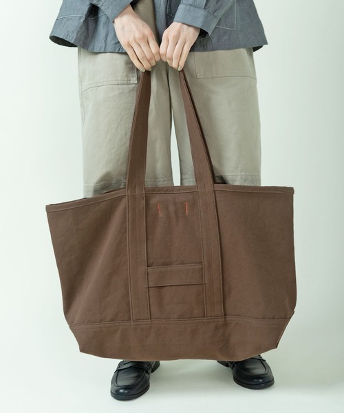 PARICI KLASSISK×ateliers PENELOPE ateliers PENELOPEとのコラボレーションアイテムに新作が登場! ボディのサイズや配色カンヌキなど、細かなディティールにこだわった存在感抜群の8号帆布トートバッグ。 岡山県倉敷市で昔ながらのシャトルを使用した力織機で織り上げました。糸への負荷が掛かりにくくゆっくりと織られる為、生地に遊びが出ます。厚みを持ち、洗いをかけることで目が詰まりふっくらとした味のある風合いに。 マチ付きの大容量で普段使いから旅行用はもちろん、インテリアの物入れとしても。内側には携帯電話や定期券など小物を収納できるポケット付き。体になじみやすいよう、洗いをかけて柔らかさを出したくたっとしたボディは、使えば使うほど生地の味わいが増し、育てたくなる楽しさも。シンプルながらも遊びの効いたデザインは、使う人を選びません。 ユニセックスでお使いいただけるので、兼用やギフトでも喜ばれそう。 ------------------------------------------------------------------------------ 【PARICI KLASSISK】 伝統的なメンズアイテムをベースに、 オーセンティックな作りにこだわったオリジナルアイテムと、 わたしたちの視点で選んだセレクトアイテムを展開。 ------------------------------------------------------------------------------ [ateliers PENELOPE] 高速道路を走っていた時、 軍のトラックを見かけた。 荷台の幌が強い風を受けて、バタバタと音をたて 膨らんだり凹んだりしていた。 陽に晒され、雨に打たれてできた皺と褪せた色は まるで布に表情があるみたいだった。 【素材の特性・お取り扱いの注意】 ・取り扱いの注意については取り扱い表示をよくご確認の上、着用をお願い致します。 ・摩擦(特に湿った状態)、汗や雨などで濡れた場合に他の衣料に色移りすることがありますので、淡色のアイテムと合わせる際はご注意下さい。 ※撮影画像は、光の当たり具合やモニターの環境により色味が違って見える場合があります。あらかじめご了承下さい。 ※ブーケと一緒に写っている画像はサンプルを使用しています。お届けする実際の商品と仕様、加工、サイズが若干異なる場合がございます。