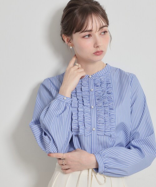 ▼▼気になるアイテムはハートマークをクリック♪▼▼ 是非お気に入り登録してチェックしてください♪ 胸のフリルがポイントのブラウスです ~POINT~ ストライプ生地なのでフリルも甘くなりすぎず、オンにもオフにも着ていただけます。 ジャケットの下からフリルを見せるのがおすすめです。 【素材】 ハリのあるポリエステル使用。フリルがきれいに出てシワにもなりにくい素材です。 ※照明の関係により、実際よりも色味が違って見える場合があります。また、パソコン・スマートフォンなどの環境により、若干製品と画像のカラーが異なる場合もございます。 【スタッフコメント】 shino(164 ) 顔まわりが一気に華やぐ主役ブラウスです。 フリルデザインが縦ラインを強調してくれるので、すっきり見えも叶います。 ジャケットやカーディガンのインナーにしても映えるので、オンオフ問わず活躍してくれます。 【26SS NEW ARRIVAL】 【26SS NEW COLLECTION】 モデル情報:身長167cm B80 W59 H82 着用サイズ:38(M) 店舗へのお問い合わせ商品番号:508-85037 ●製品寸法: 36(S):着丈58cm B102cm 袖丈58cm 肩幅35cm 38(M):着丈60cm B105cm 袖丈59cm 肩幅36cm 40(L):着丈62cm B108cm 袖丈60cm 肩幅37cm 42(LL):着丈63cm B111cm 袖丈61cm 肩幅38cm 備考: