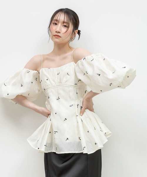 ◆2026SS新商品◆気分やシーンに合わせてアレンジ自在な3WAYデザインのペプラムトップス。袖を付けてスクエアネック風にも、外してノースリーブでも楽しめる、フェミニンムード漂う万能トップスです。POINT・袖付き、オフショルダー、ノースリーブの3WAY仕様・チューリップ柄のふくれジャガード生地に刺繍を施したこだわりの生地を使用・袖はギャザーをたっぷり入れたバルーンデザイン・袖裏はチュール生地を使用し、軽やかな透け感を演出・袖口ゴム入りで着心地◎・肩紐はお好みで長さ調節可能・サイド切り替え+ギャザーペプラムでウエストすっきり・背中はシャーリングで程よく身体にフィット・身頃は裏地付きで透けにくく安心・後ろはファスナー開きで脱ぎ着がスムーズCOORDINATEマーメイドスカートを合わせて特別感のある上品な女性らしいコーディネートに。デニムパンツを合わせればカジュアルダウンしながらもフェミニンなコーディネートが楽しめます。- - - - - - - - - - - - - - -洗濯方法:手洗い可透け感:ややあり裏地:あり伸縮性:なし生地の厚さ:普通- - - - - - - - - - - - - - -
