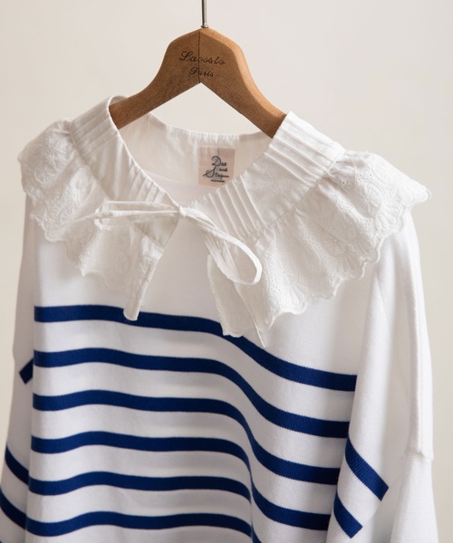 Dot&Stripesでは定番で人気のレースとピンタックを組み合わせた付け襟がアップデートして再登場! 台襟をなくし、今までよりもスッキリと着用出来るように改善しました。 いつものスタイリングのアクセントとしても使いやすいサイズ感で、シーズンレスで活躍出来ます。 ふんだんにあしらったレースで可愛らしいデザインなので、甘いコーディネートが苦手な方は カジュアルなTシャツや、ボーダーのカットソー、ジャケット、ニットとの組み合わせもオススメです◎ ----------------------- 透け感:なし 裏地:なし 伸縮性:なし 光沢感:なし -------------------- = サイズスペック = 【衿幅】 CB丈…12.2㎝ 【素材の特性・お取り扱いの注意】 ・取り扱いの注意については取り扱い表示をよくご確認の上、着用をお願い致します。 ・この製品に使用しているレースは、乱暴に扱いますと破損しやすく、引掛けや引きつれが起こりやすいのでお取り扱いには十分御注意下さい。 ※撮影画像は、光の当たり具合やモニターの環境により色味が違って見える場合があります。あらかじめご了承ください。 ※着用の商品はサンプルで撮影しております。お届けする実際の商品と仕様、加工、サイズが若干異なる場合がございます。