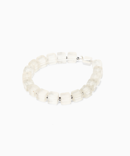 SUNNY SIDE Antique Bohemian Trade Beadsメーカー品番:23-315B古き良き時代のストーリーを形にする【on the sunny side of the street】より、18世紀~19世紀頃にヨーロッパで作られた「アンティーク・ボヘミアン・トレードビーズ」を贅沢に使用した逸品が届きました。■歴史を語る「トレードビーズ」の深みかつて通貨の代わりとして世界を旅した「トレードビーズ」。現代の量産品には決して出せない、不均一なカットや、経年変化による柔らかな質感が特徴です。ボヘミア(現在のチェコ)の職人が当時一つひとつ手作業で削り出したビーズは、それぞれが異なる表情を持ち、手元に唯一無二の奥行きを与えてくれます。■「ホワイト×クリア」がもたらす大人の清潔感マットな質感のホワイトと、光を優しく透過するクリアビーズを組み合わせた「ホワイトC」。アンティークらしい武骨さと、モダンでクリーンな印象が共存しています。夏の日差しに映えるのはもちろん、冬のニットスタイルにも馴染む万能なカラーリングは、大人のアクセサリー選びに相応しい選択です。※希少なアンティークビーズを使用しているため、ビーズの色・形・大きさ・並び順には個体差があり、すべて「アソート(一点物)」となります。・掲載画像はあくまでイメージ(一例)です。・アンティーク素材特有の「欠け」「削れ」「風化」「黒ずみ」が見られる場合がございますが、これらは不良品ではなく、経年変化による味わいとしてお楽しみください。【on the sunny side of the street/オン ザ サニーサイド オブ ザ ストリート】長きにわたり、ジュエリー・ディレクションを経た小面 誠氏が立ち上げたブランド、"on the sunny side of the street"《オンザサニーサイドオブザストリート》。そのブランド名は1930年代とあるジャズの名曲から名付けられたユニークなもの。曲中の歌詞で表現されるようなとても前向きな想いがジュエリーのひとつひとつに込められています。《画像についてのご注意》※照明の関係により、実際よりも色味が違って見える場合があります。またパソコン・スマートフォンなどの環境により、若干製品と画像のカラーが異なる場合もございます。※商品の色味は、商品アップ画像をご参照ください。《商品のお気に入り登録について》「カートに入れる」または「予約する」右側のハートマークを押していただくと、再入荷、残り1点、セールなどの通知を受け取ることが出来ます。